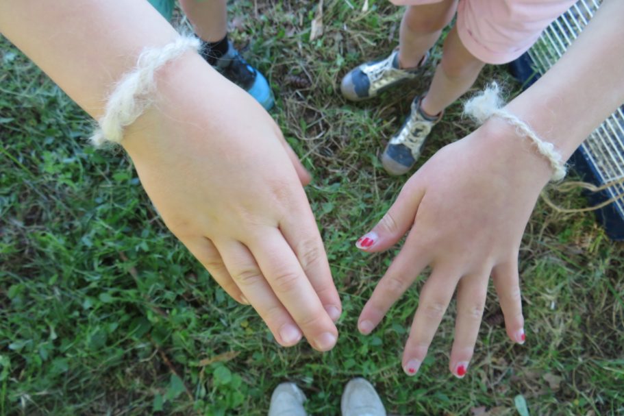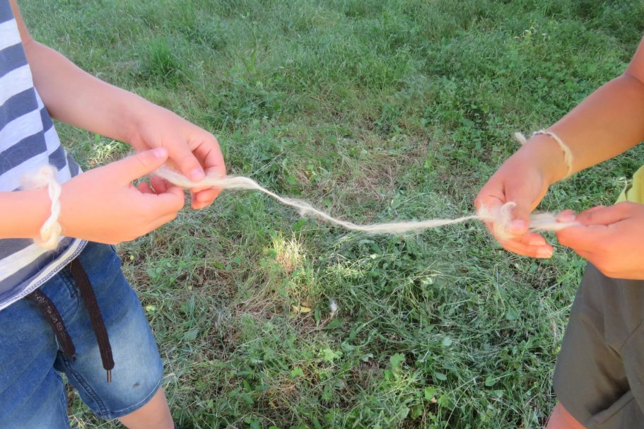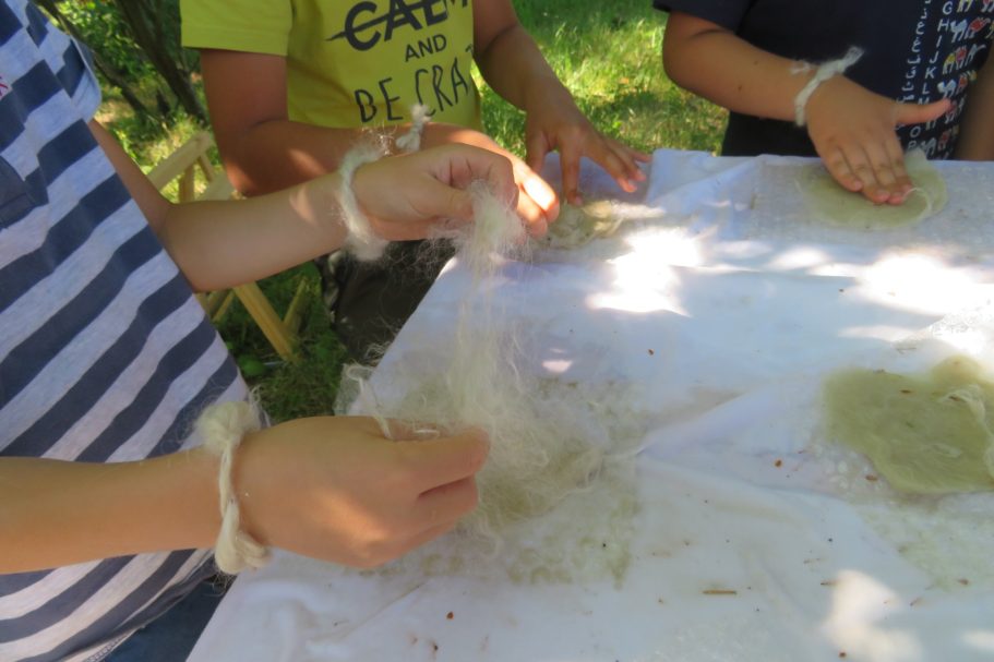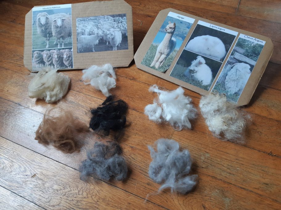 au programme de ces ateliers, suivant les attentes : découverte des chèvres Angora, de leurs caractéristiques, de ce qu'elles mangent (avec possibilité de les approcher, de les caresser et les nourrir) ; les animaux élevés pour leur laine ; les étapes de fabrication d'un fil (cardage, filage) et découverte de divers outils (fuseau, rouet, cardes etc.) ; le feutre ; le tissage ; la teinture ; les métiers à tricoter....